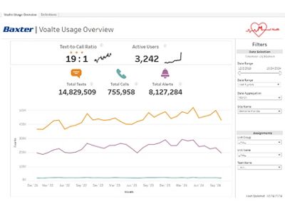 This comprehensive view enables administrators to assess communication patterns, identify potential inefficiencies, and support smooth operations across all sites. It offers a high-level view of Voalte usage data across the hospital system, providing important insights such as: