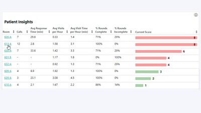 Via the Patient Experience Score, which combines key Nurse Call metrics at the staff. patient, and unit level