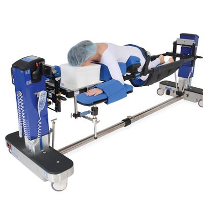 This Allen spine table is designed for surgical spine procedures with features including 360° radiolucency, support for supine, prone and lateral positions, electronic table controls and more.